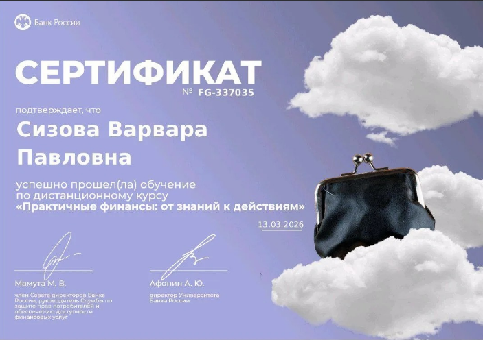 Студенты техникума проходят онлайн-обучение в университете Банка России. Предлагаемые к изучению модули содержат много интересной, актуальной и полезной информации в области финансовой грамотности. Курс помогает не только изучить полезную информацию, но и сформировать важные финансовые привычки. Участники изучают, как превратить мечты в реальности при помощи планирования своего бюджета, как избежать неприятностей на рынке финансовых услуг, какие есть надежные инструменты для формирования сбережений как ими пользоваться и другие темы. Онлайн- курс построен на ситуациях из реальной жизни. Поздравляем студентов группы №21, которые уже получили заслуженные сертификаты!